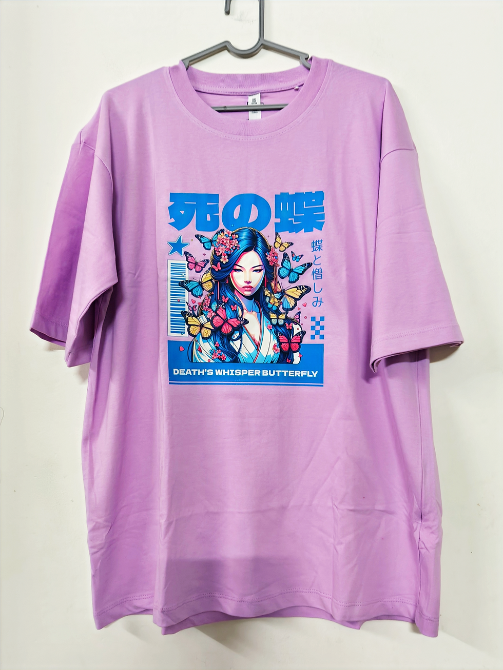 PRIME COLLECTIONS lavender oversized 'DEATH'S WHISPER BUTTERFLY' T-shirt 200GSM